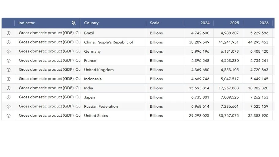В тройку лидеров вошли Китай ($44,29 трлн), США ($32,38 трлн) и Индия ($18,9 трлн).