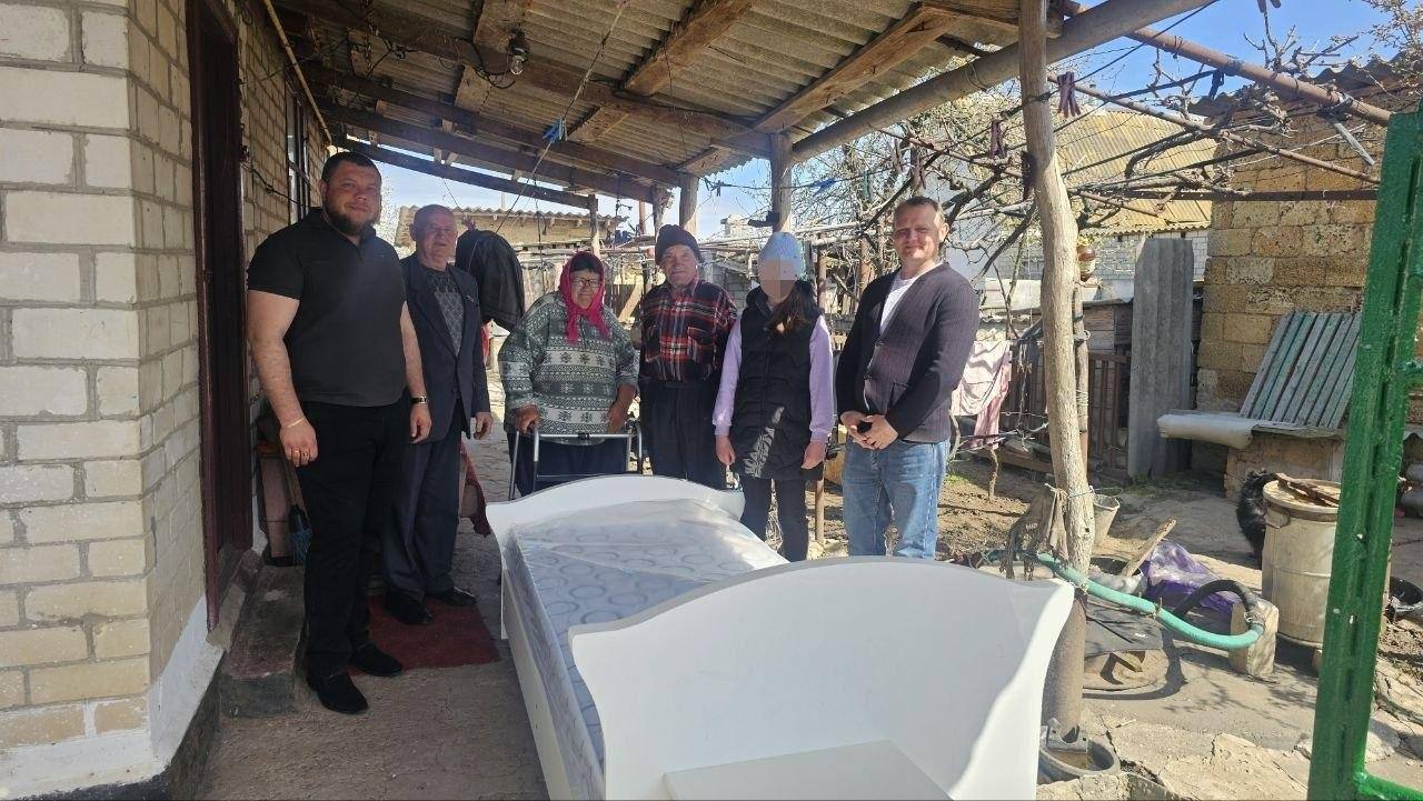 Депутаты от партии «Единая Россия» Татьяна Бурчин, Владимир Червяков и Сергей Евсеев совместно с сотрудниками администрации и начальником ТУ «Шевченко» Александром Фёдоровым передали кровати и тумбочки семьям, оказавшимся в тяжёлой жизненной ситуации на территории Скадовского муниципального округа от Кабардино-Балкарской Республики.