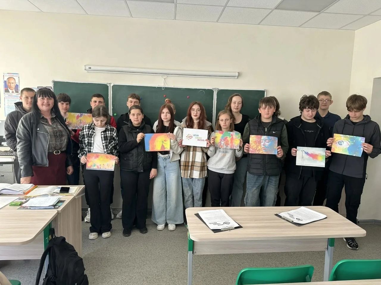 Параллельно в аудитории развернули выставку плакатов «Жизнь в ярких красках», которая стала ярким визуальным напоминанием о том, что даже в сложных ситуациях можно найти место для оптимизма и развития.