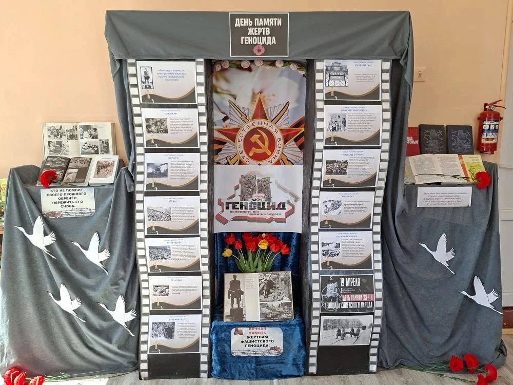 Экспозиция включает архивные фотографии, документы, копии указов военного времени и свидетельства очевидцев, которые раскрывают масштабы преступлений против мирного населения в годы Великой Отечественной войны.