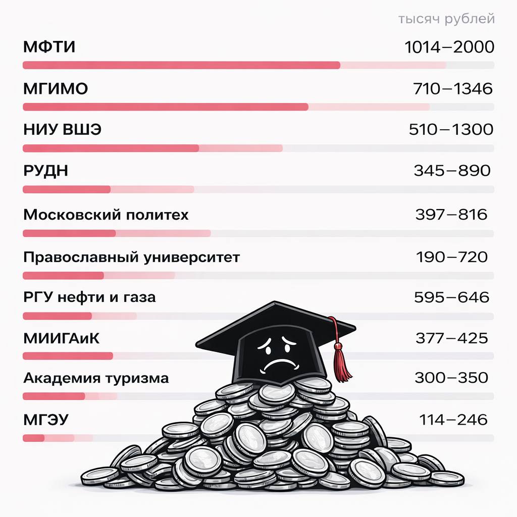 В МФТИ стоимость программ начинается примерно от 1 млн рублей в год, а отдельные направления доходят до 2 млн.