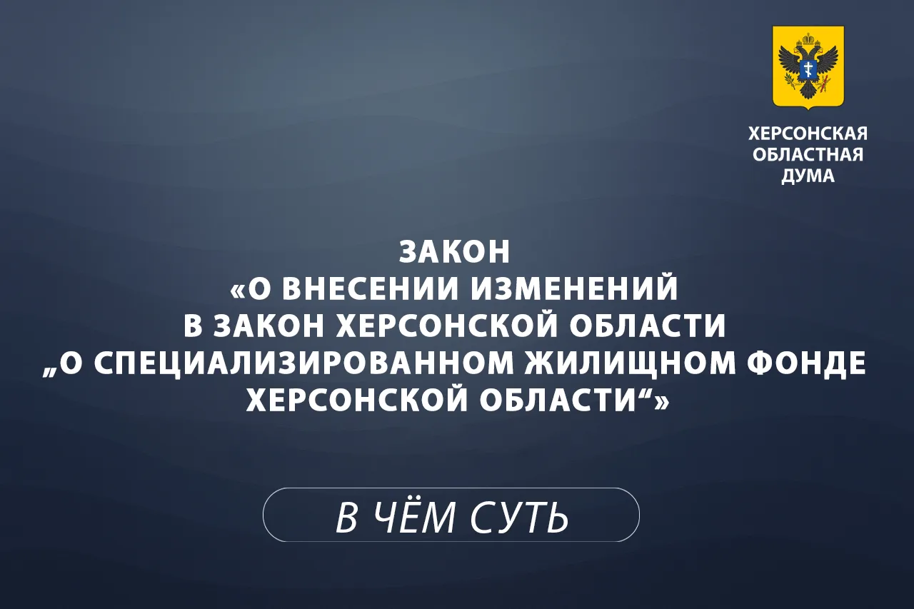 Херсонская областная Дума приняла Закон от 11 ноября 2025 года № 34-ЗХО «О внесении изменений в Закон Херсонской области „О специализированном жилищном фонде Херсонской области“»