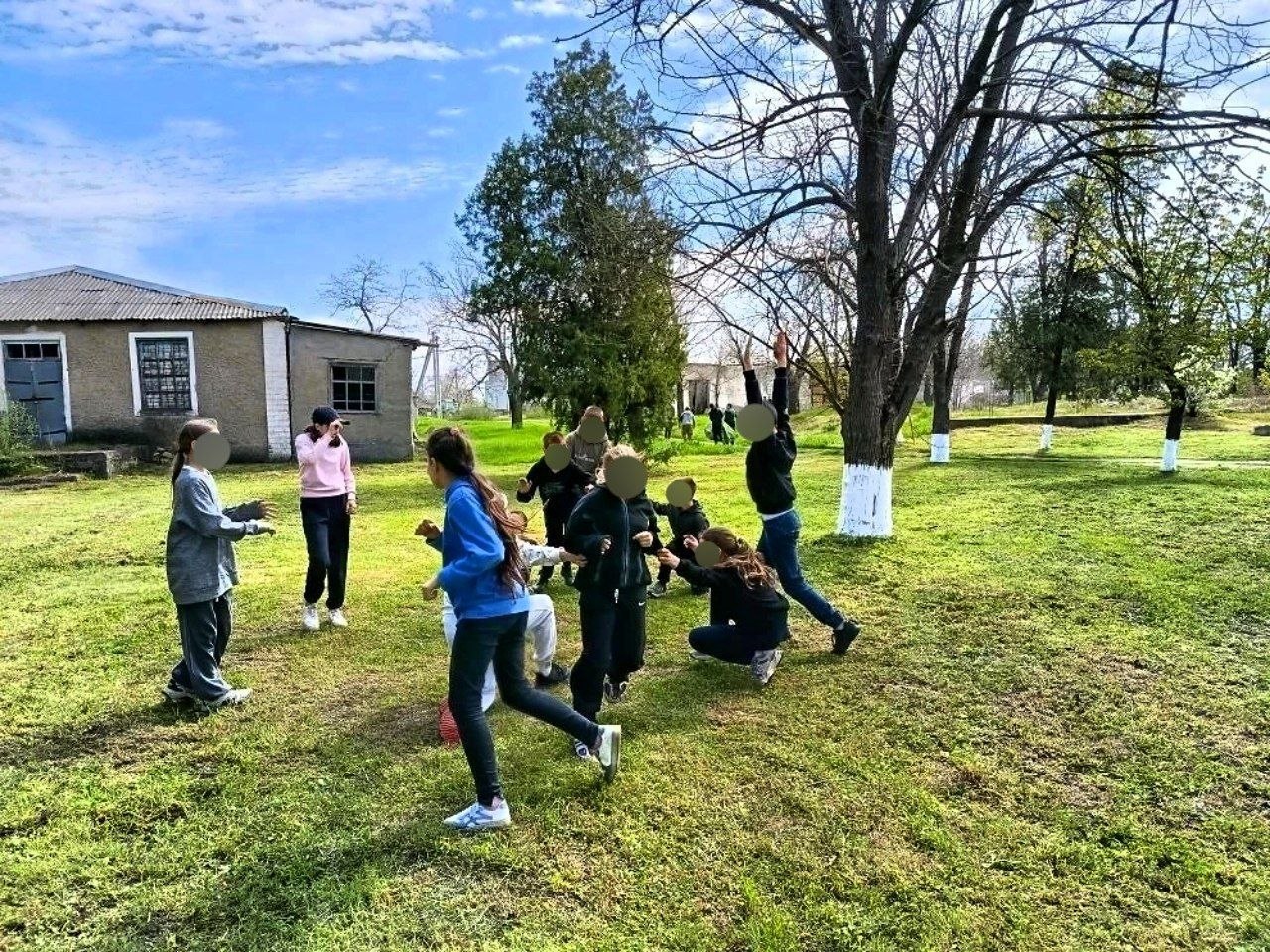 Ученики 5 класса также не остались в стороне — они с азартом играли в башкирскую народную игру «Липкие пеньки»
