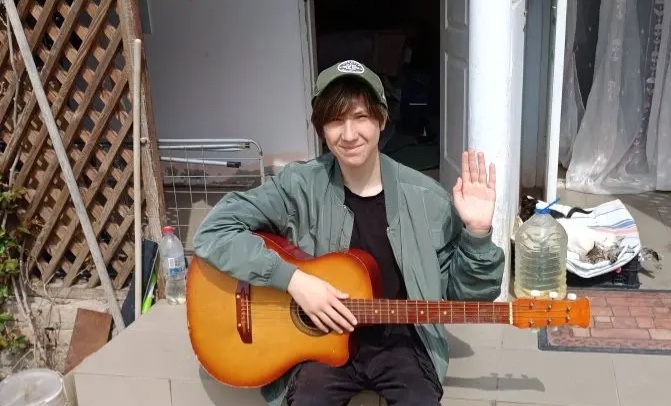 Волонтёры некоммерческой организации «Начало пути» из Казани подарили гитару эвакуированному подростку Святославу, который только начинает свой путь в музыке.