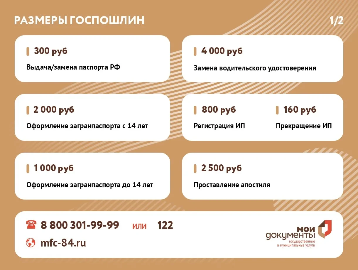 Размер государственной пошлины за услуги в МФЦ