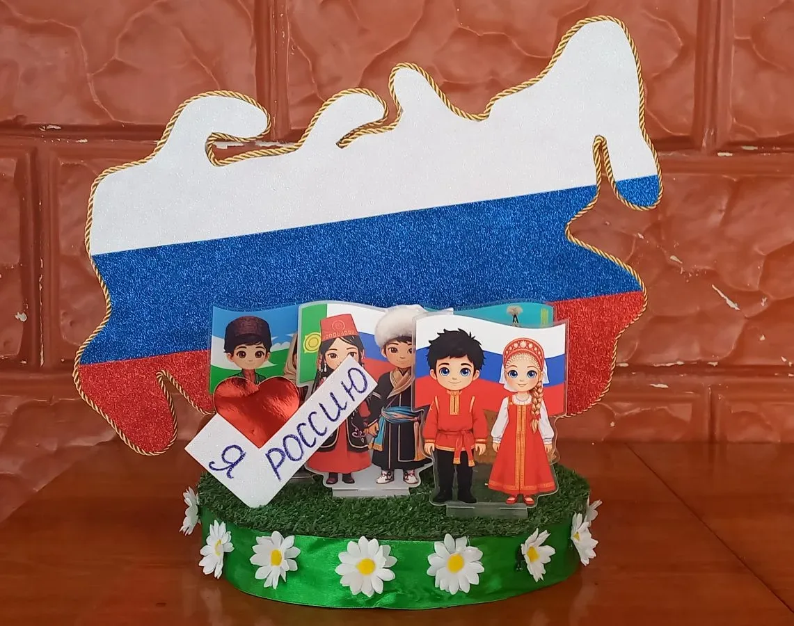 Ребята с большим энтузиазмом погрузились в процесс создания объёмной композиции, посвящённой теме единства и дружбы народов России. Каждый участник ответственно подошёл к работе: подбирал цвета, продумывал детали и старательно воплощал свои идеи.