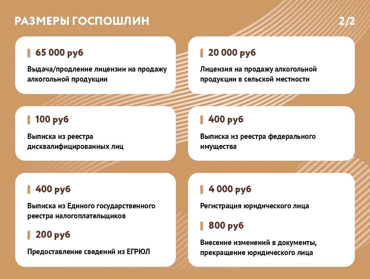 Некоторые услуги требуют оплаты государственной пошлины. Мы подготовили актуальный перечень основных из них.