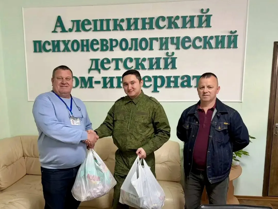В учреждении проживают 53 ребенка-инвалида. В рамках шефства офицеры СУ СК России по Херсонской области передали детям продукты и поблагодарили сотрудников интерната за их труд.