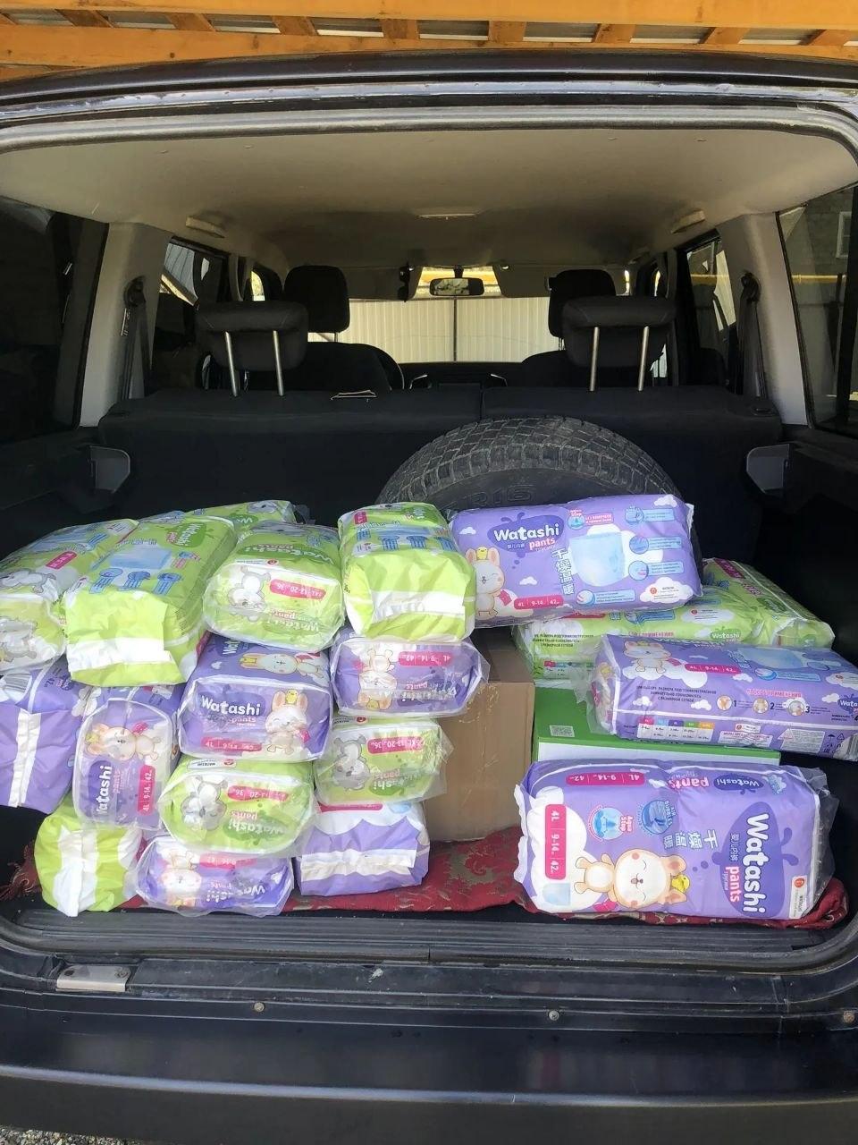 Апшеронский район передал жителям средства гигиены и бытовой химии: чистящие инструменты, влажные салфетки, детские подгузники и жидкое мыло. Всего около 150 кг.