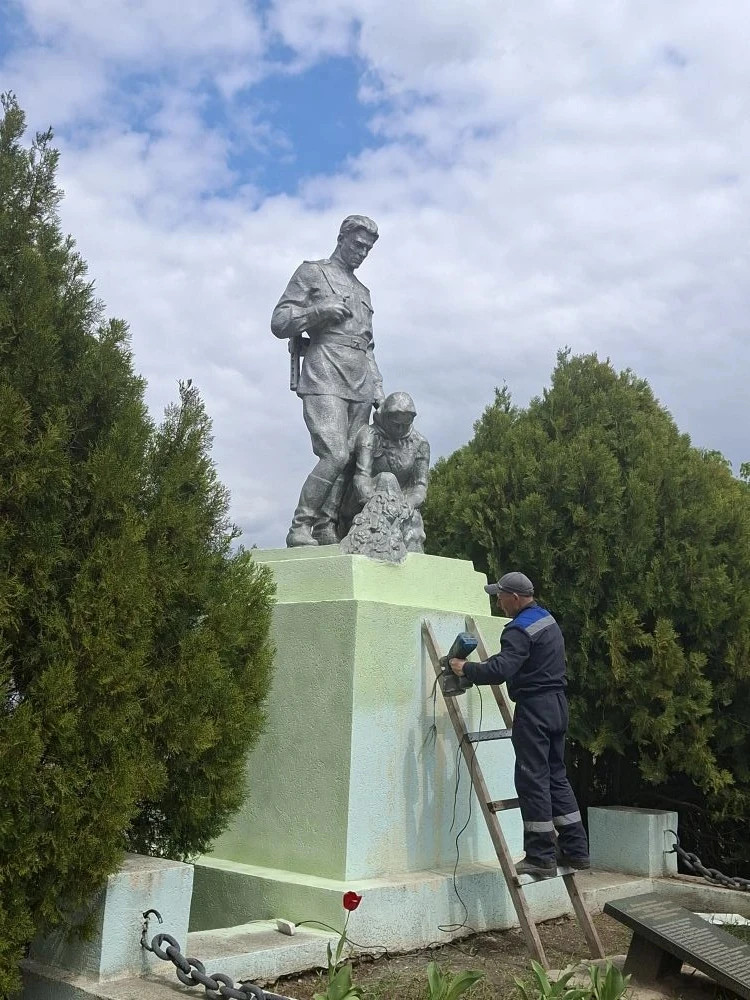 В селе всегда особое внимание уделяют местам памяти. Активисты покрасили мемориал. Они тщательно очистили территорию вокруг памятника, покосили траву и привели в порядок клумбы.