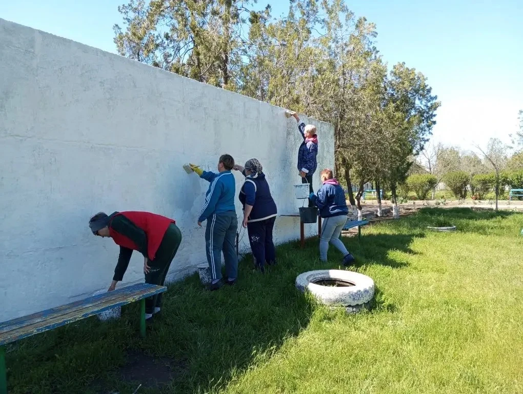 В нём приняли активное участие 22 сельских жителя. Женщины занимались побелкой, а мужчины — кошением травы.