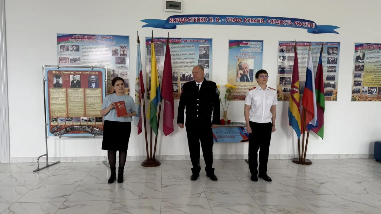 Директор школы № 7 Наталия Светличная передала педагогам и ребятам Хлебодаровской школы в Чаплынском округе книгу «История Кубани в событиях, датах и фактах» для изучения истории Кубани и кубанского казачьего войска.