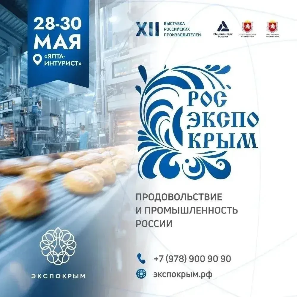 С 28 по 30 мая в Ялте при поддержке Минпромторга России пройдёт XII выставка российских производителей «РосЭкспоКрым».