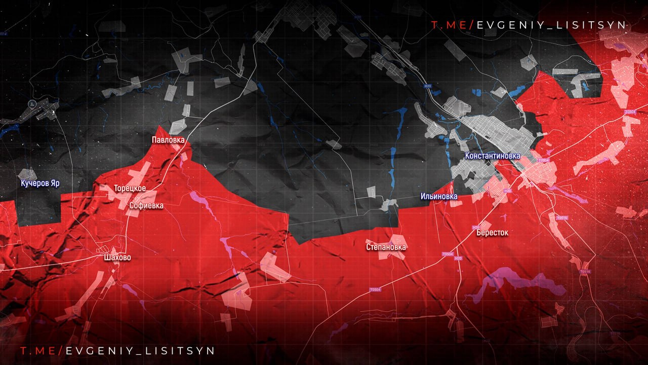 Ильиновка освобождена. Бои в Долгой Балке, идёт охват города. Наши закрепляются на западе Константиновки, на востоке - тяжёлые бои в частном секторе.