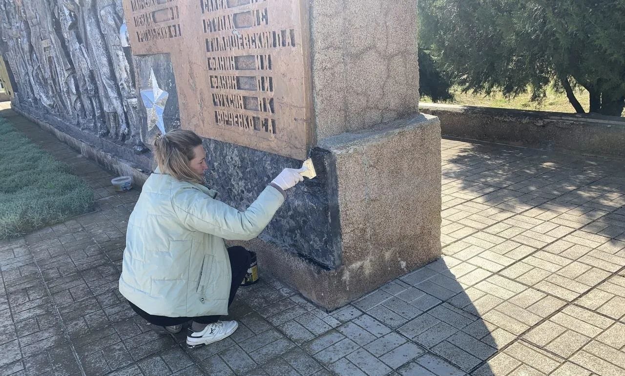 Они убрали мусор, очистили монумент от грязи, обновили окраску памятника погибшим в годы войны и у монумента «Родина-Мать».
