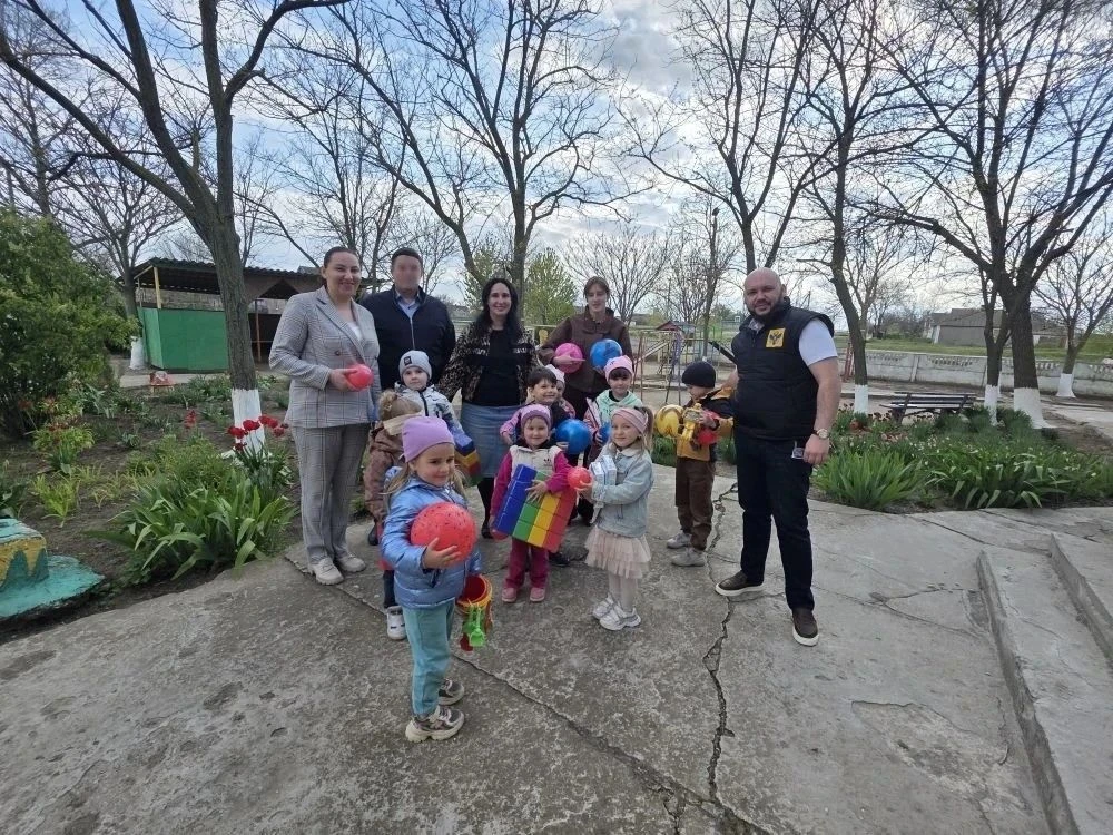 В рамках своего визита представители Администрации с большим удовольствием вручили детям подарки: детские игрушки и спортивный инвентарь, а также краску для ремонта спортивной площадки на территории детского сада.