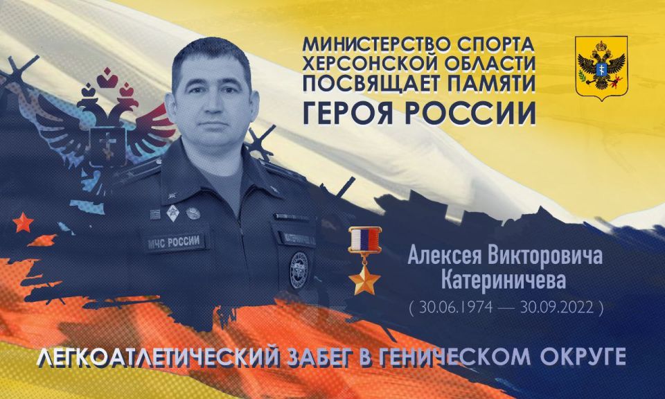 30 июня в Геническом округе пройдет легкоатлетический забег, посвящённый памяти Героя России Алексея Викторовича Катериничева — офицера-пограничника, сотрудника ЦСН ФСБ России, МЧС России, заместителя губернатора Херсонской области по безопасности. Он...